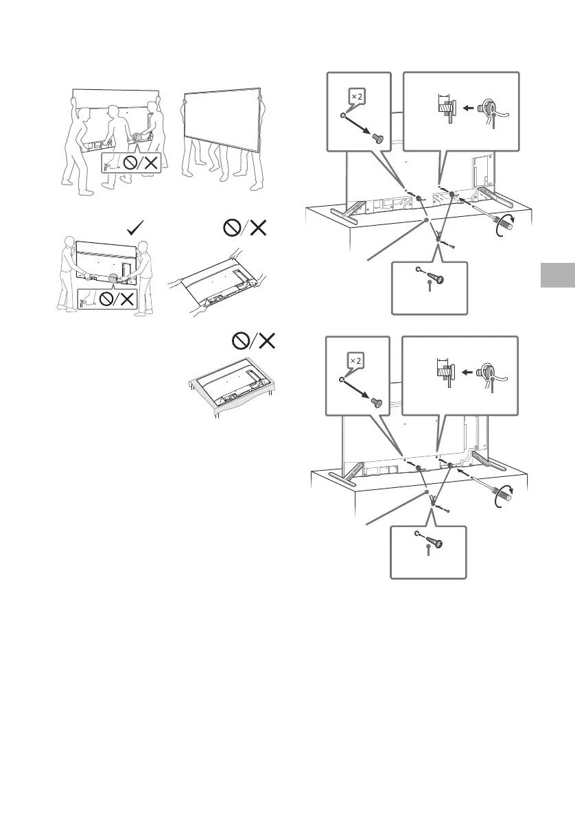 • Ao transportar manualmente o televisor, segure-o conforme é