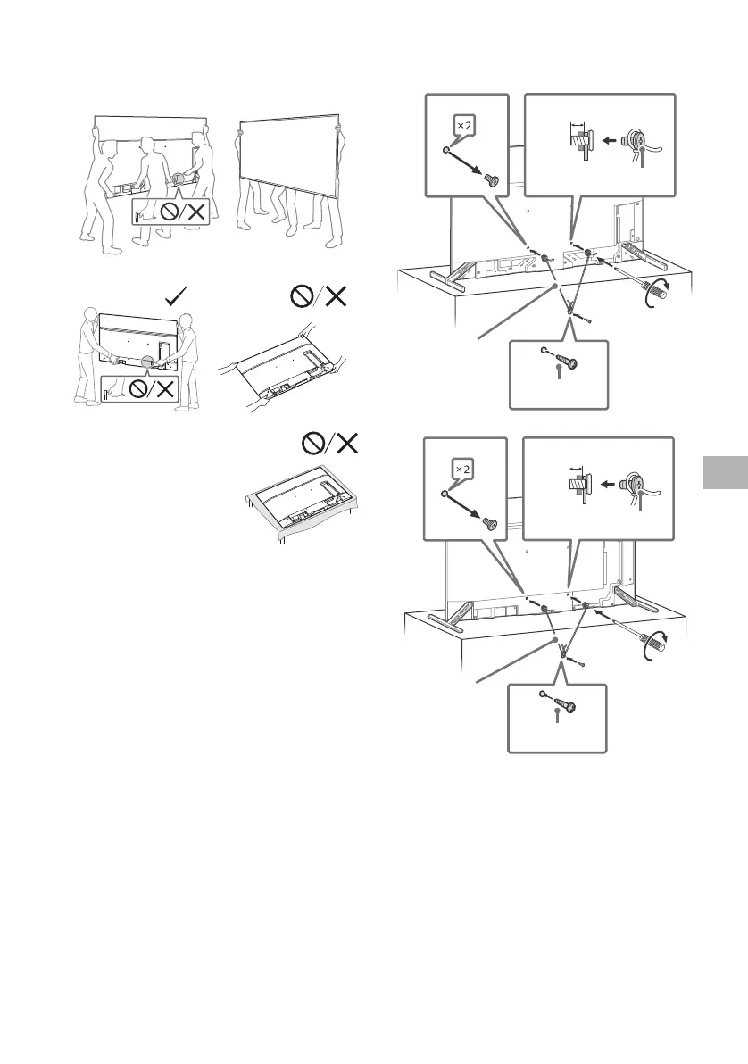 • Når TV'et flyttes med hånden, skal det holdes som vist