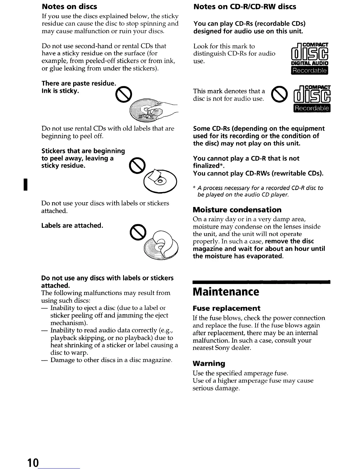Notes on CD-R/CD-RW discs