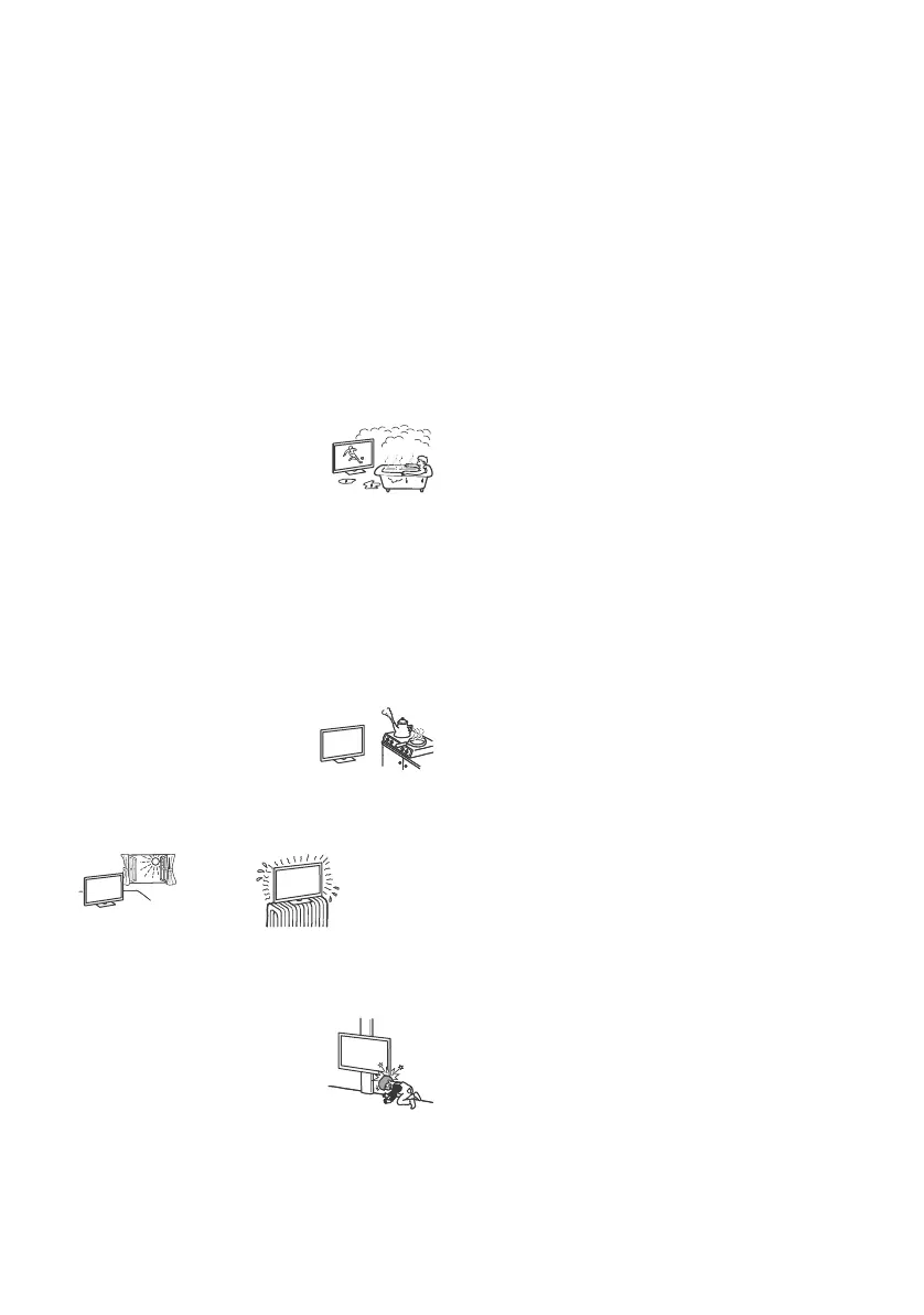 • Do not place the TV in a humid or dusty
