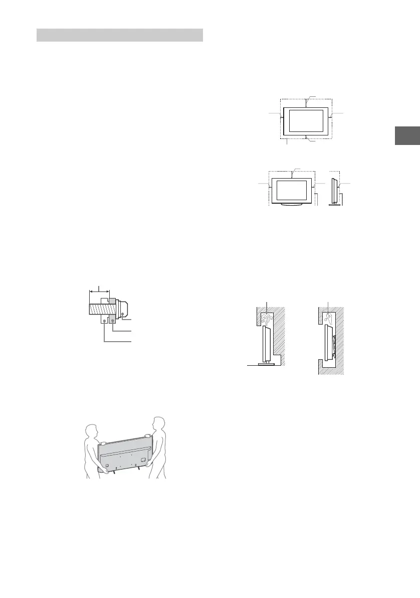 • Lassen Sie ausreichend Platz um das Fernsehgerät (siehe
