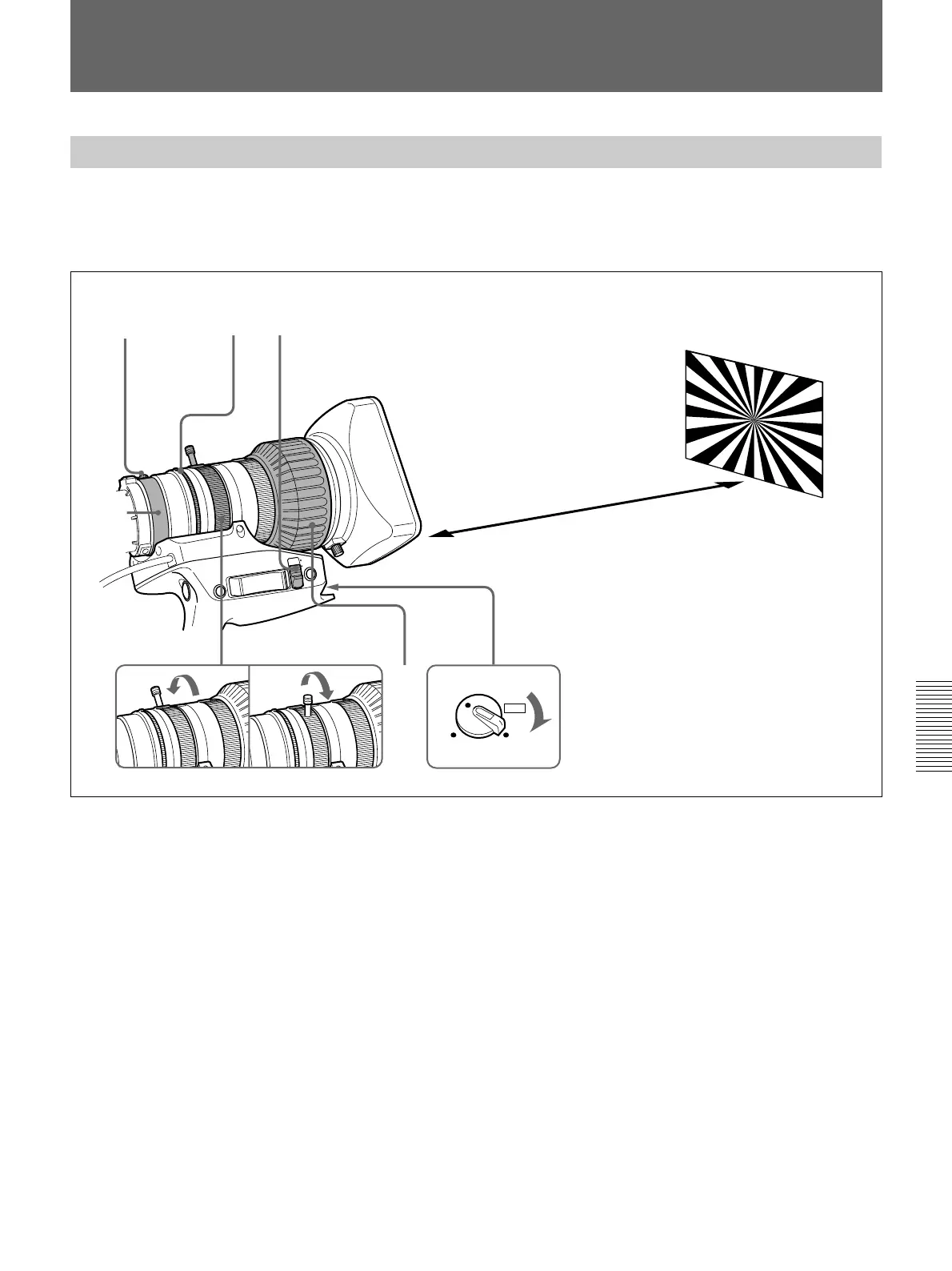 7 Turn the focus ring so that the test chart is in focus.