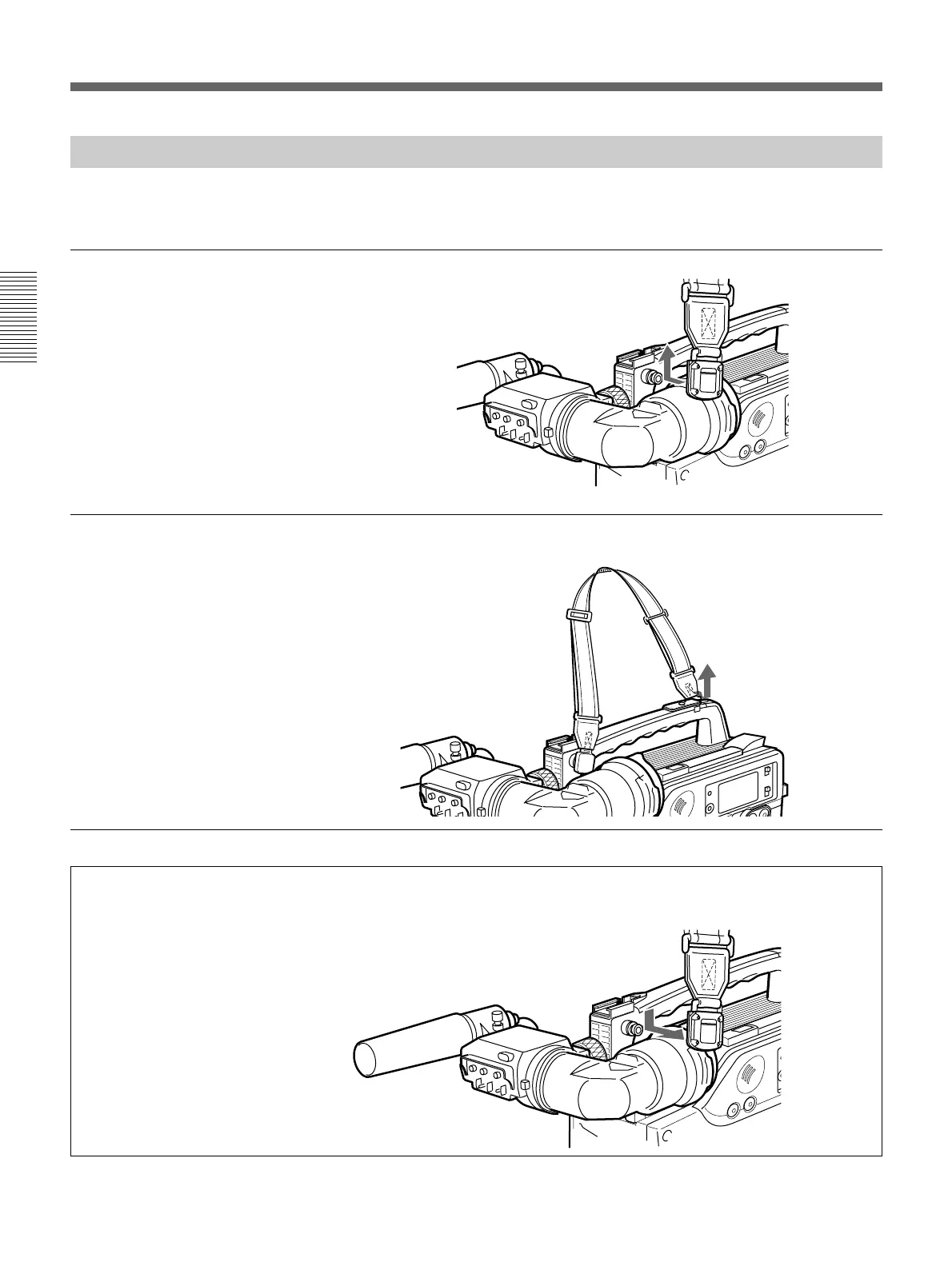 This section describes the procedure for fitting the supplied shoulder strap to the camcorder.