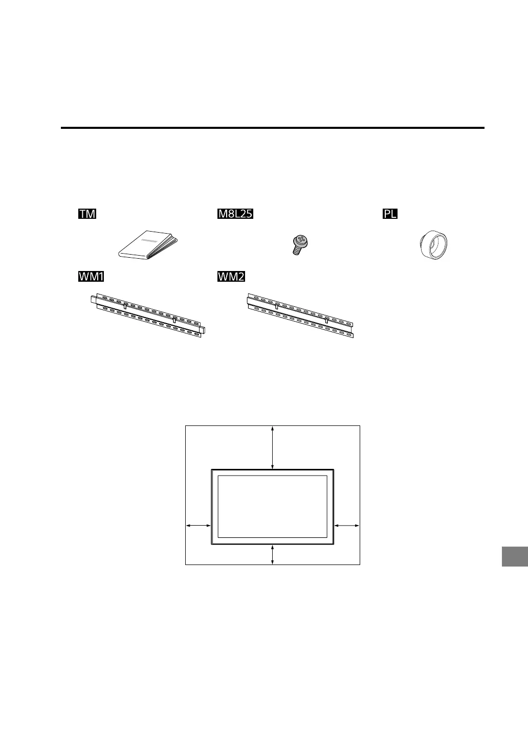 Seinäasennuskiinnittimen tarvikkeet (vakiovaruste)