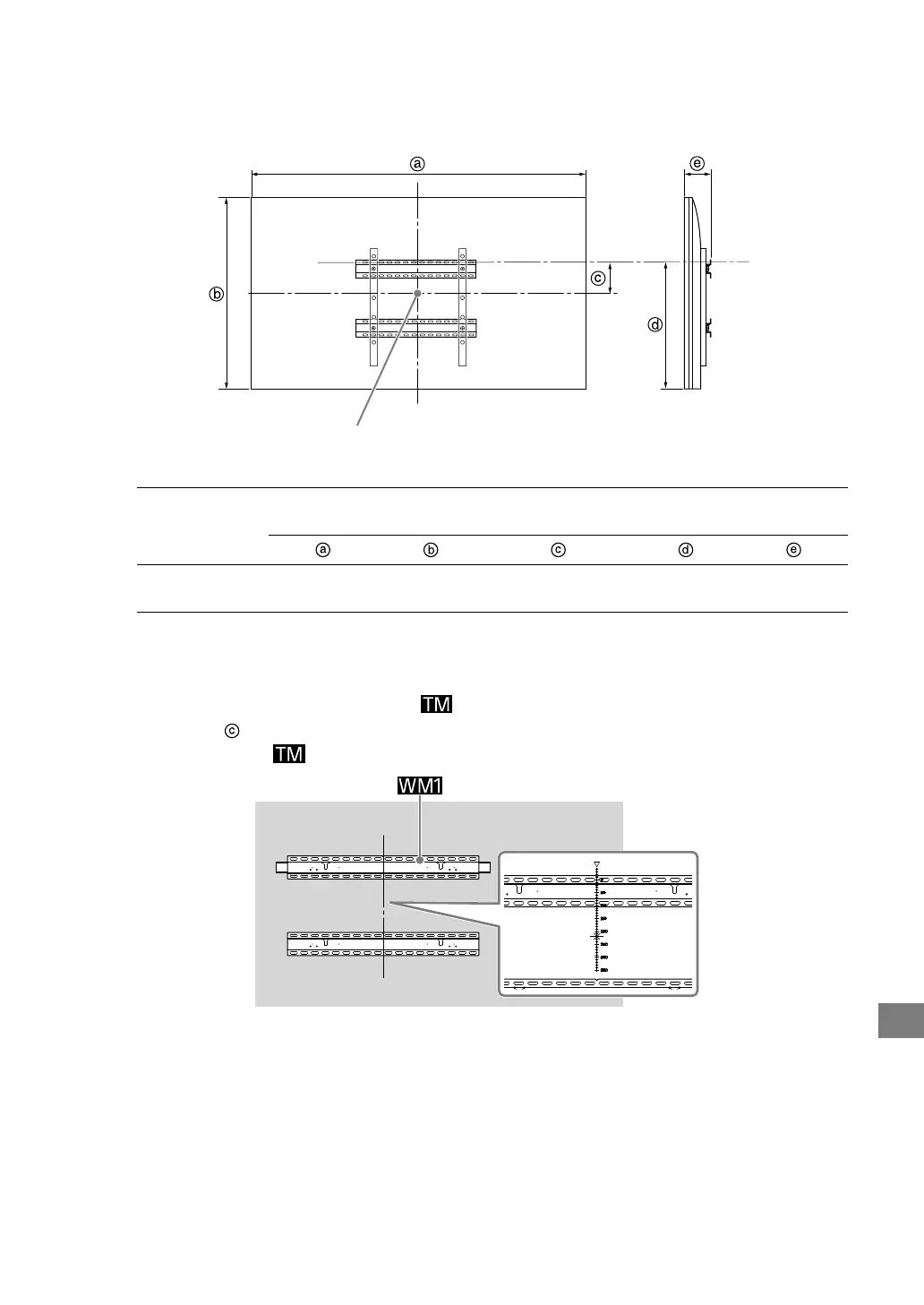 6 Lag et merke på papirmalen som viser midten av TV-skjermen (se