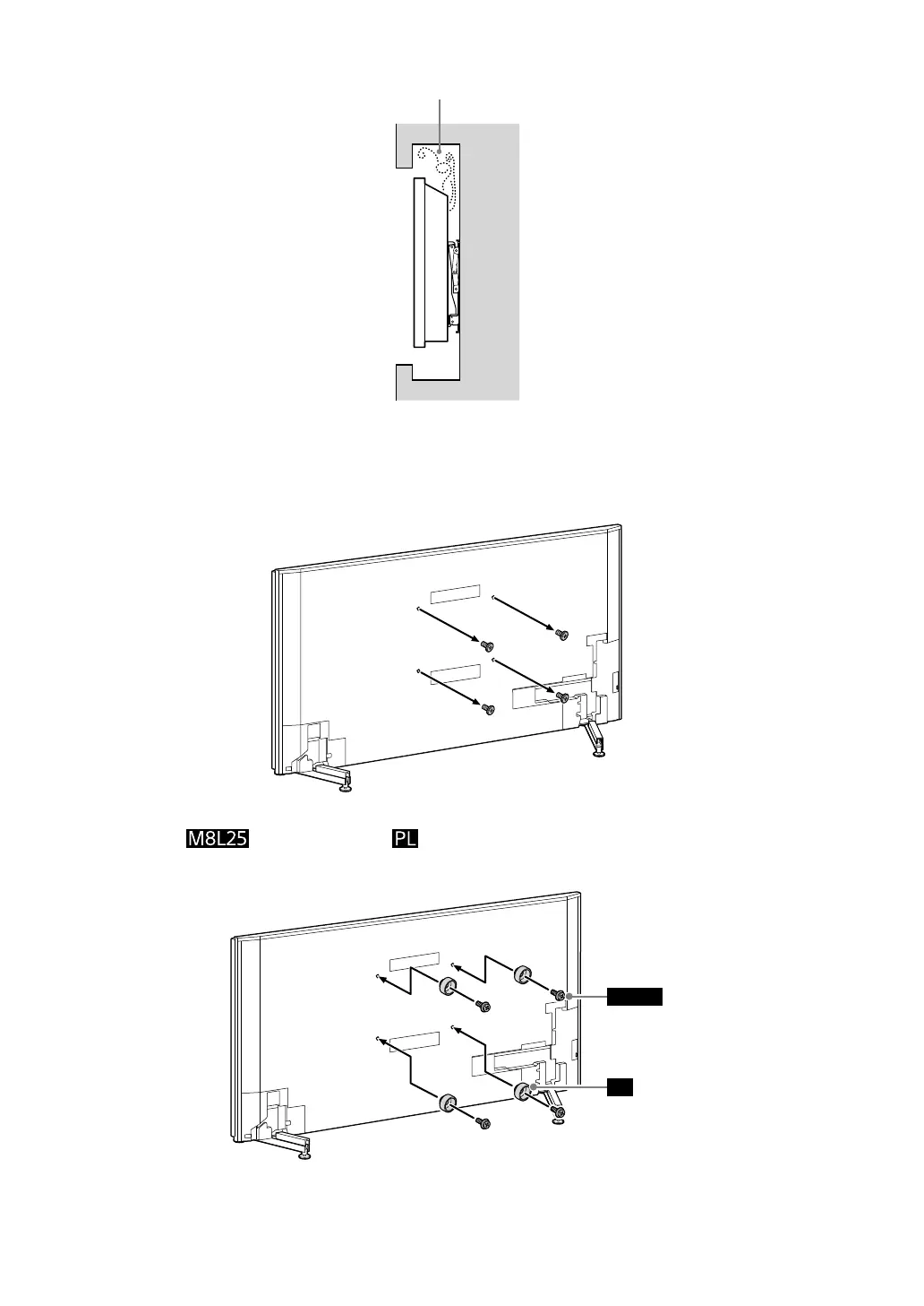 4 Vidaları ve makaraları TV’nin arkasına takın (duvarla paralel