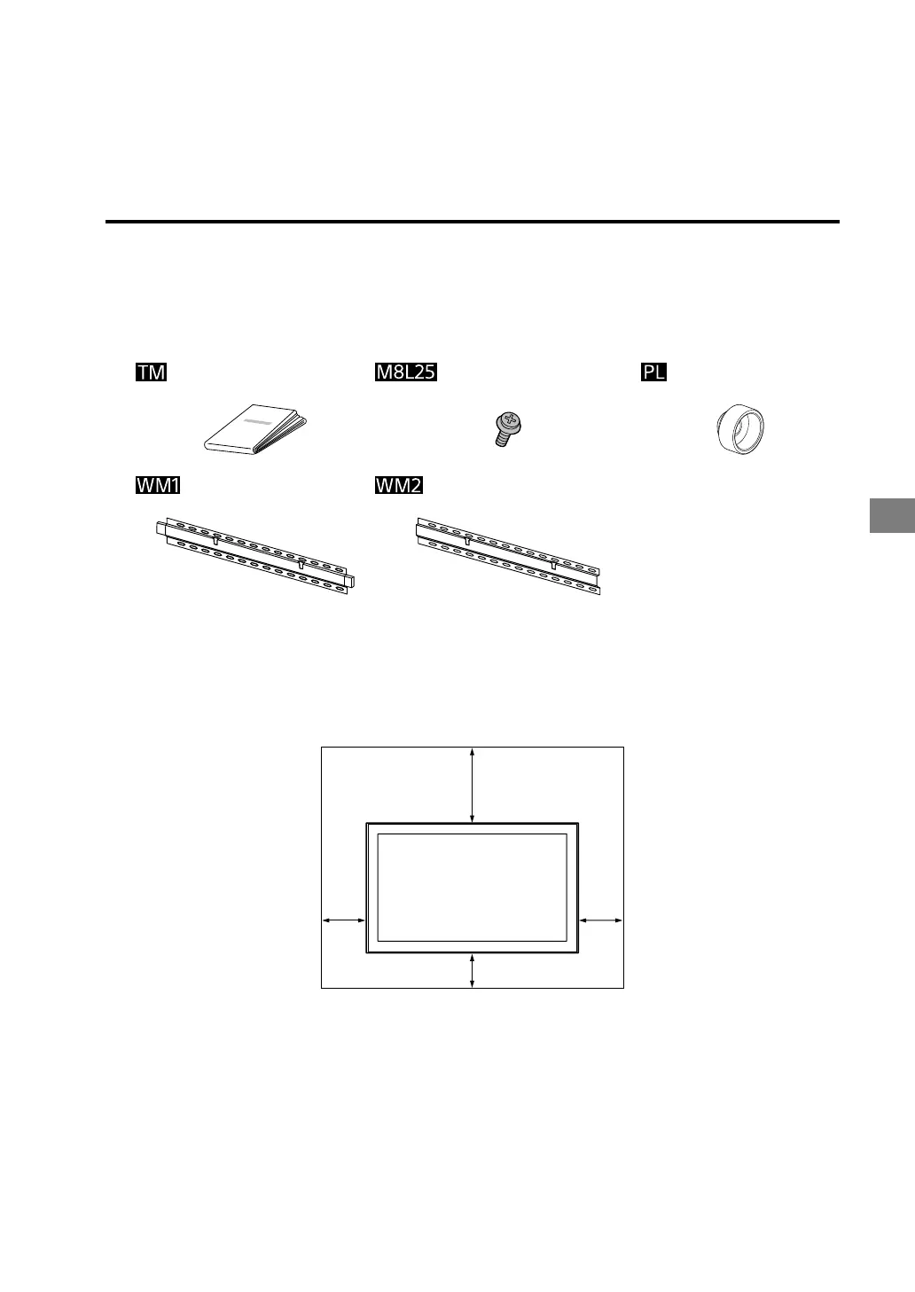 Ponechejte dostatečnou vůli mezi televizorem a stropem a výstupky na stěně, jak vidíte níže.
