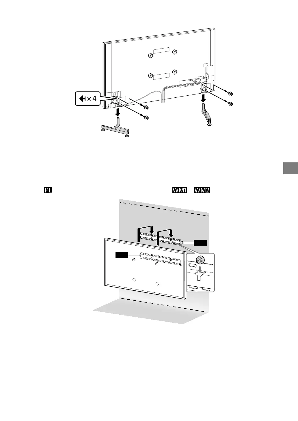 •Při upevňování stolního stojanu utáhněte (dříve demontované) šrouby vpůvodních otvorech na zadní straně televizoru.