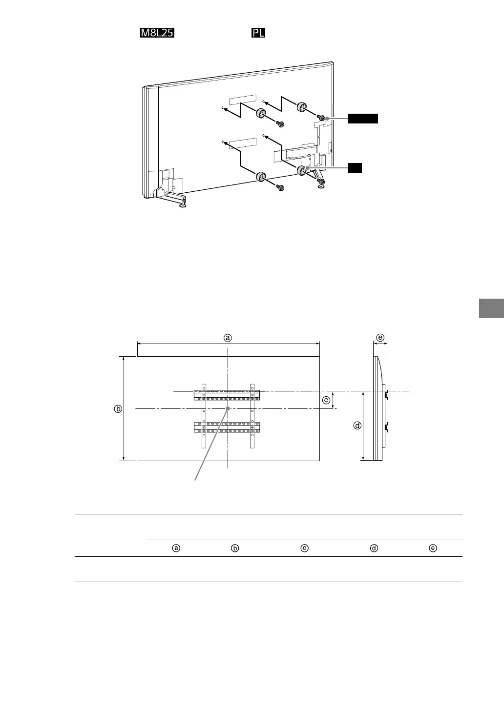 Reportez-vous au tableau suivant lorsque vous installez le téléviseur au mur. Pour connaître le