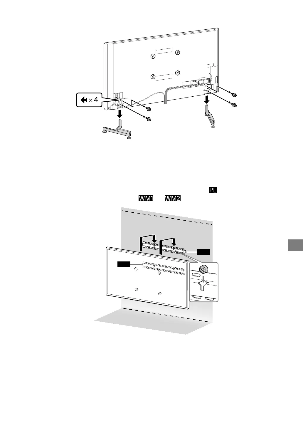 •Khi gắn lại Chân Đế Đặt Bàn, hãy chắc chắn siết chặt các đinh ốc (trước đây đã được tháo ra) vào các lỗ ban đầu ở phía sau