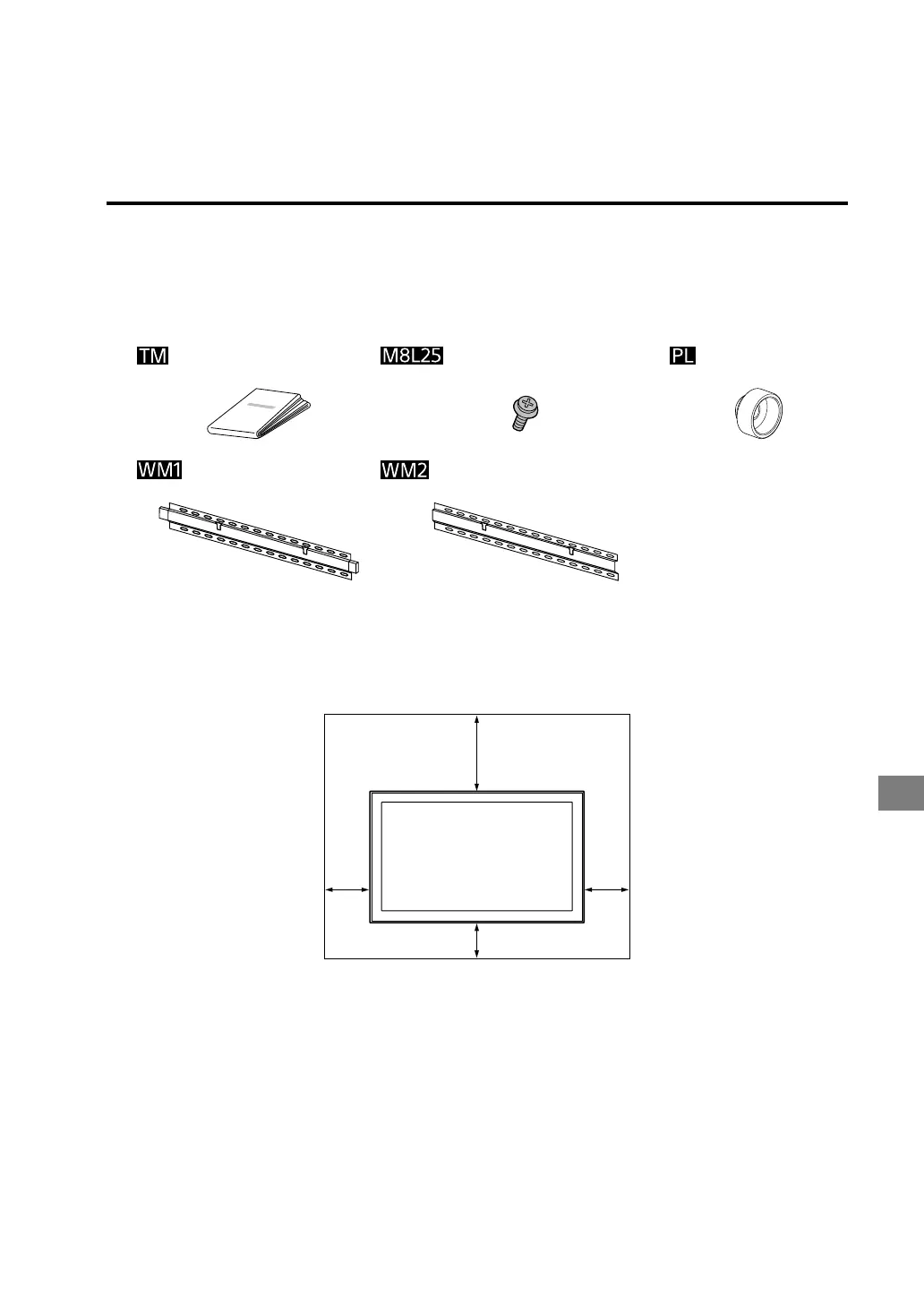 在电视机与天花板和墙壁突出部分之间留下合适的间隙,如下图所示。