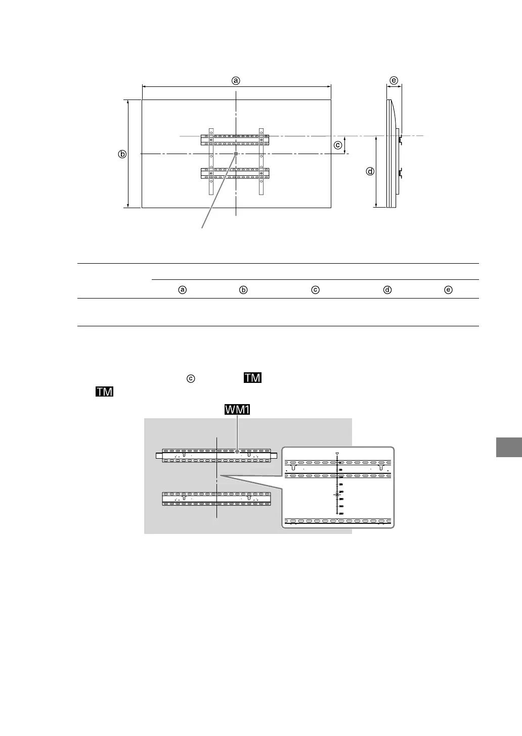 请参照下表将电视机安装到墙壁上。关于电视机重量,请参阅电视机的参考指南。