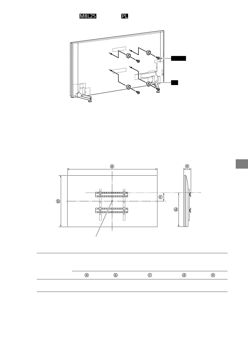Consulte la siguiente tabla acerca de la instalación del televisor en la pared. Para conocer el