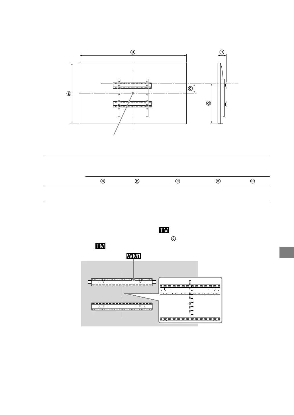 Se följande tabell beträffande att installera TV:n på väggen. Se TV:ns referensguide avseende