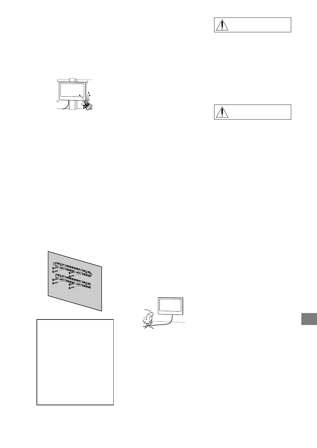 • Hvis TV'et ikke sikres korrekt under