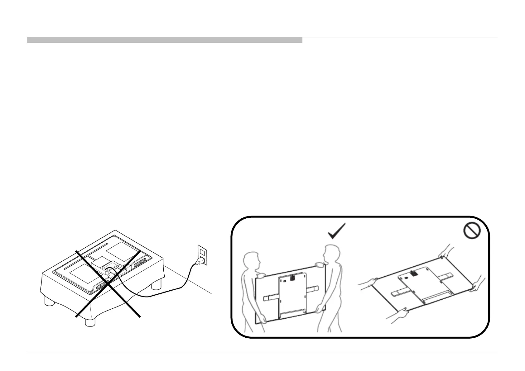 *When transporting by hand, hold it as shown below. Do not put stress on the panel and the frame around the screen.