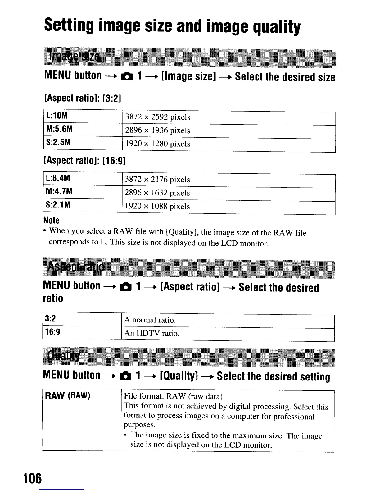 • When you select a RAW file with [Quality], the image size