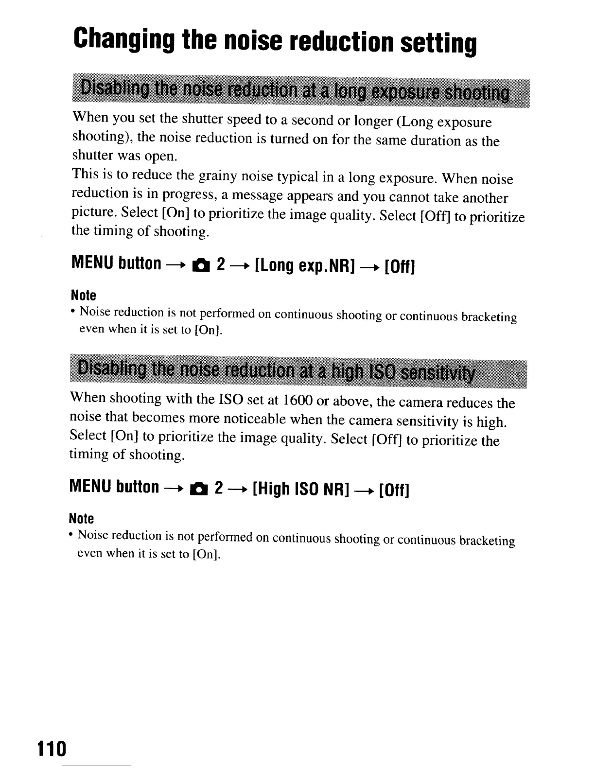 • Noise reduction is not performed on continuous shooting or continuous bracketing