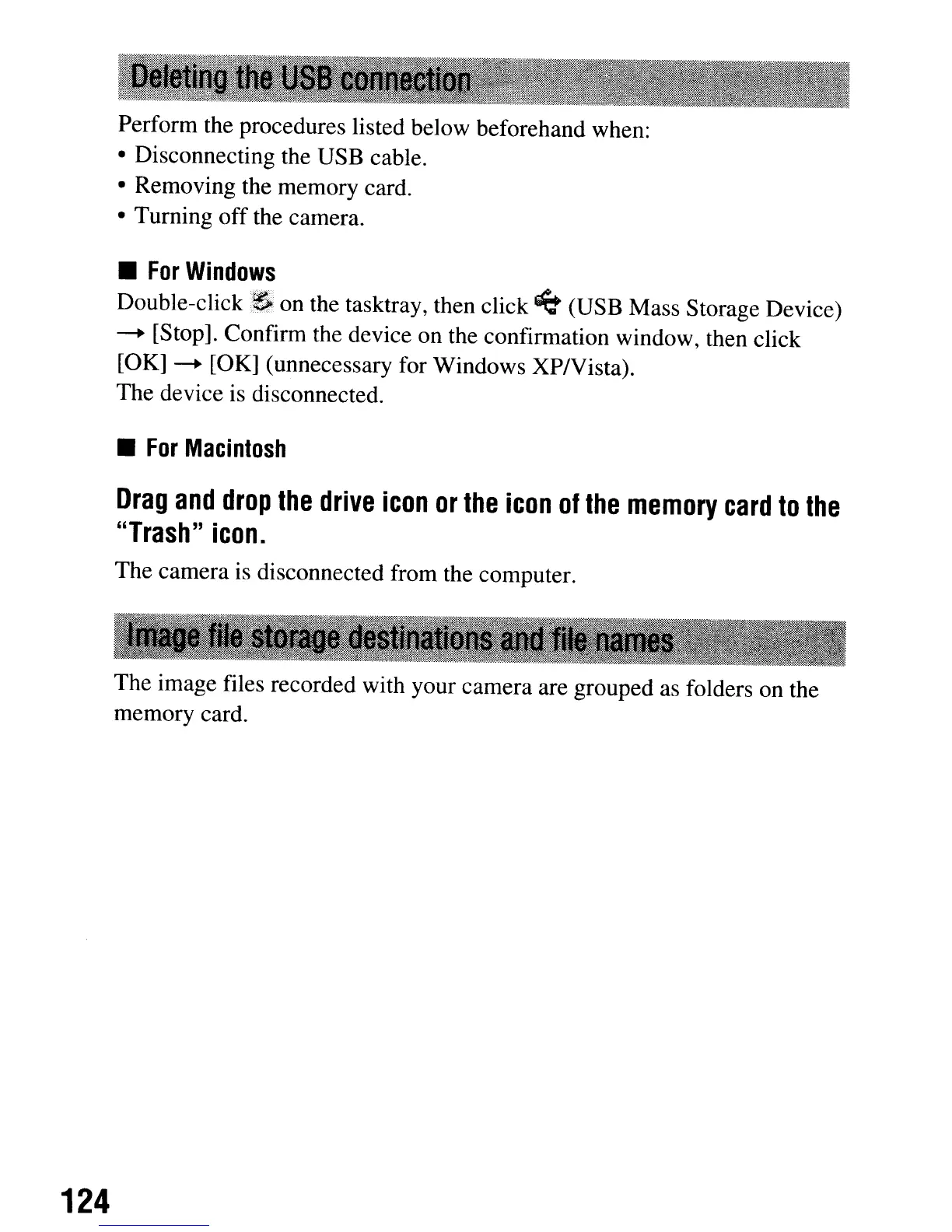 • Disconnecting the USB cable.