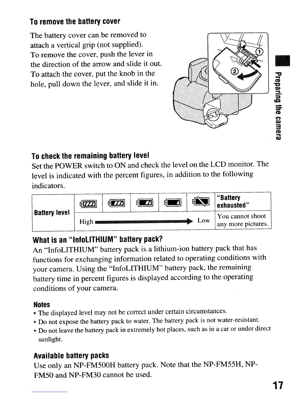 your camera. Using the "InfoLITHIUM" battery pack, the remaining