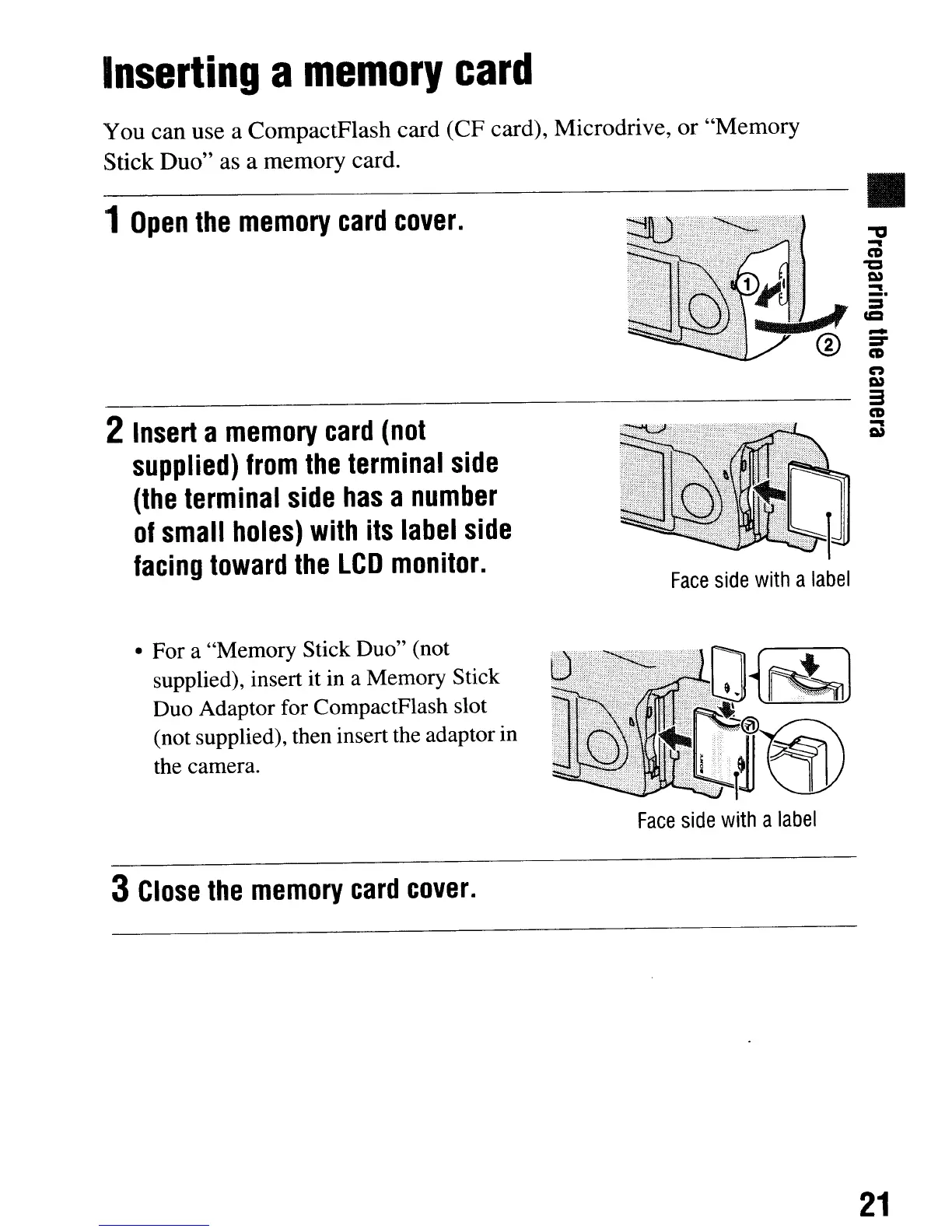 • For a "Memory Stick Duo" (not