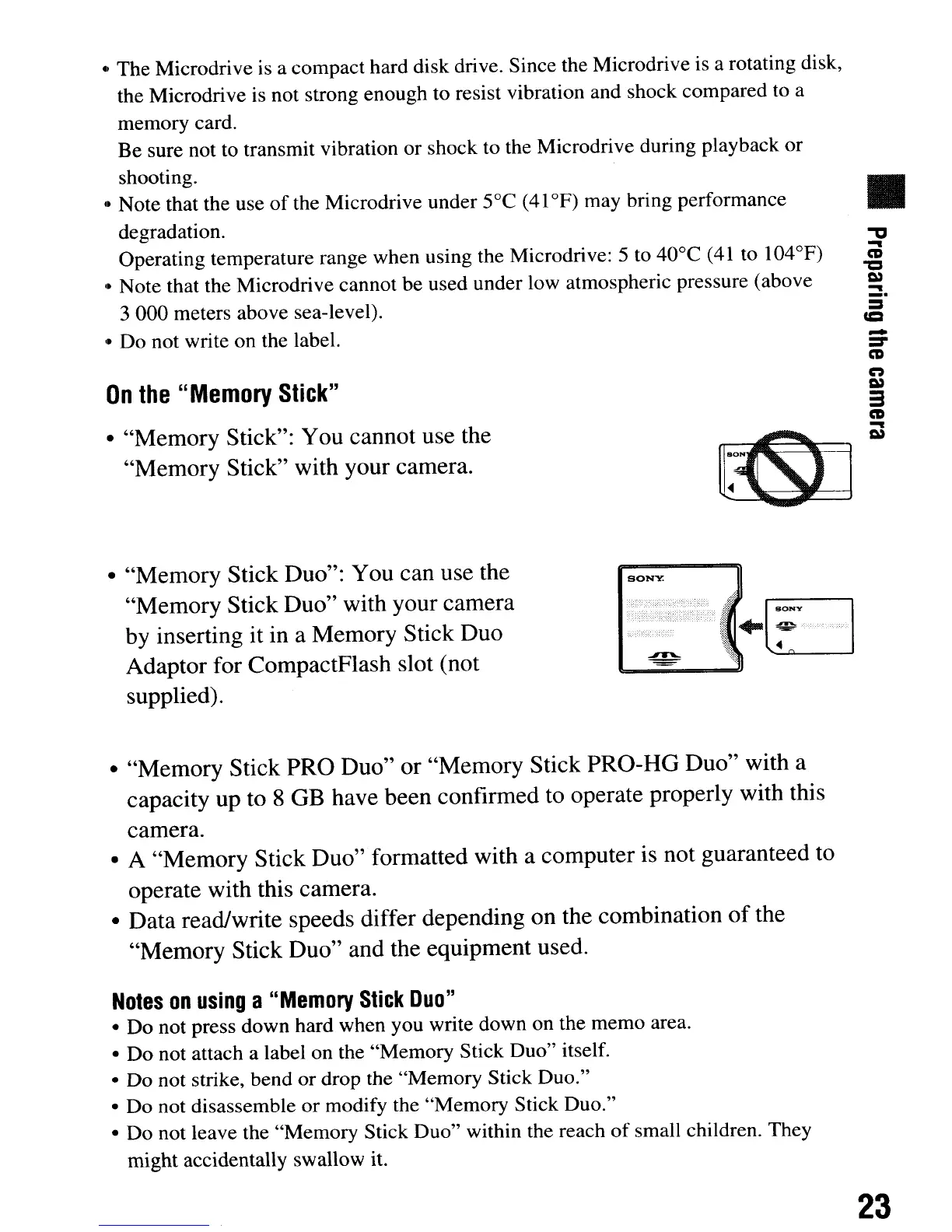 "Memory Stick Duo" with your camera