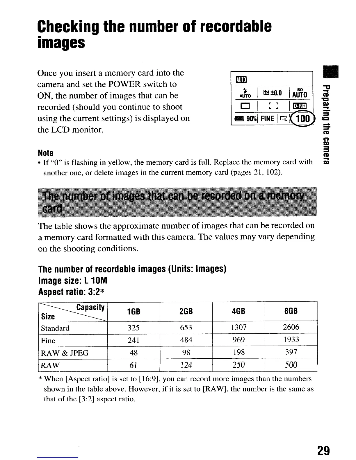 *When [Aspect ratio] is set to [16:9], you can record more images than the numbers