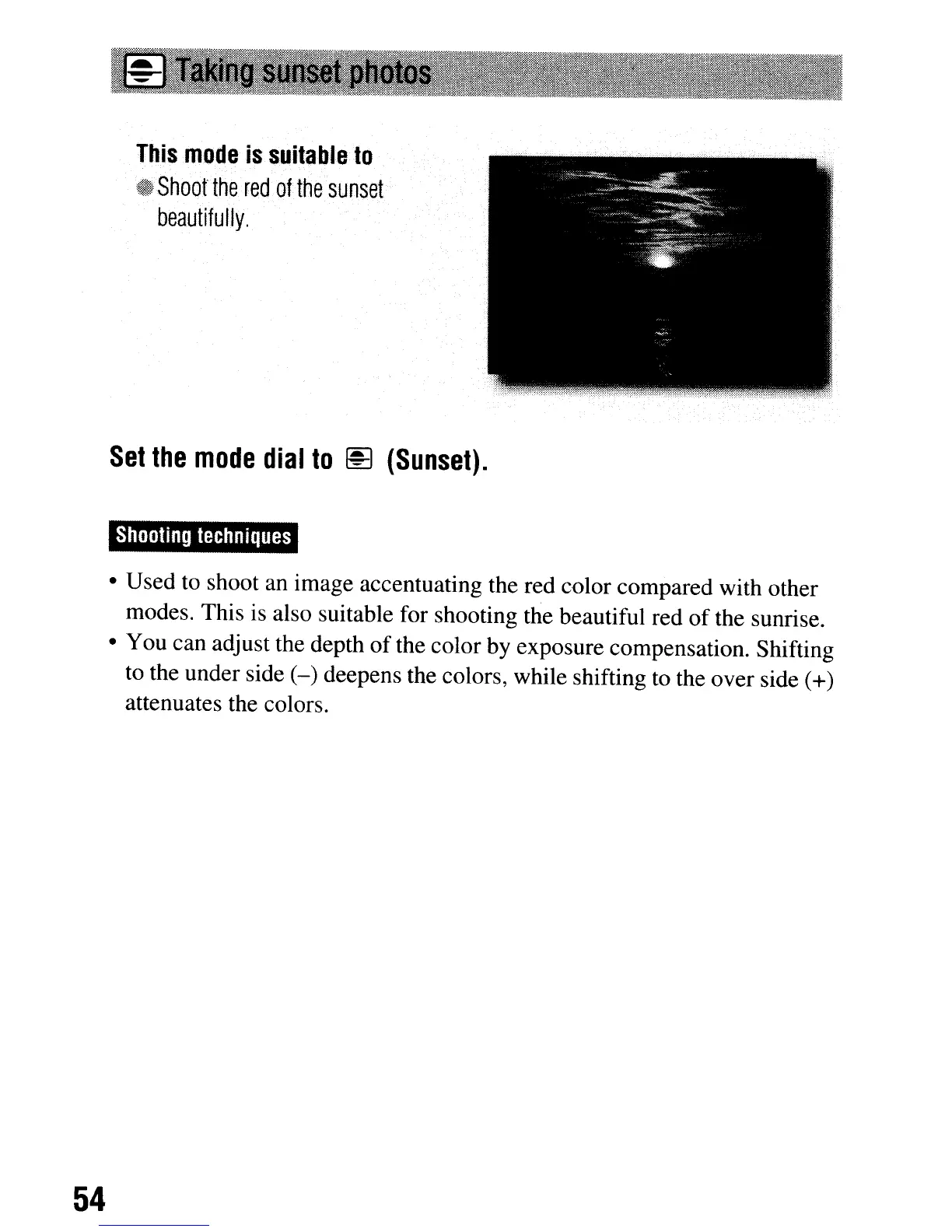 the color by exposure compensation. Shifting