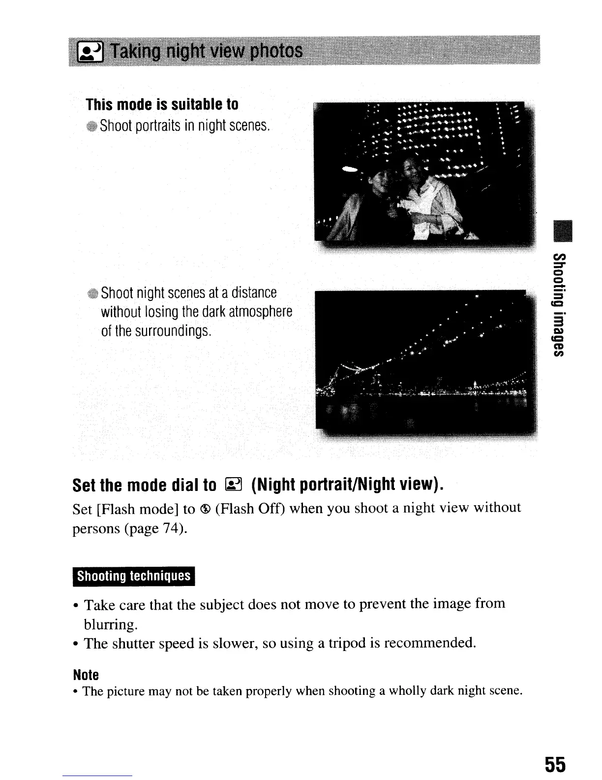 • The picture may not be taken properly when shooting a wholly dark night scene.