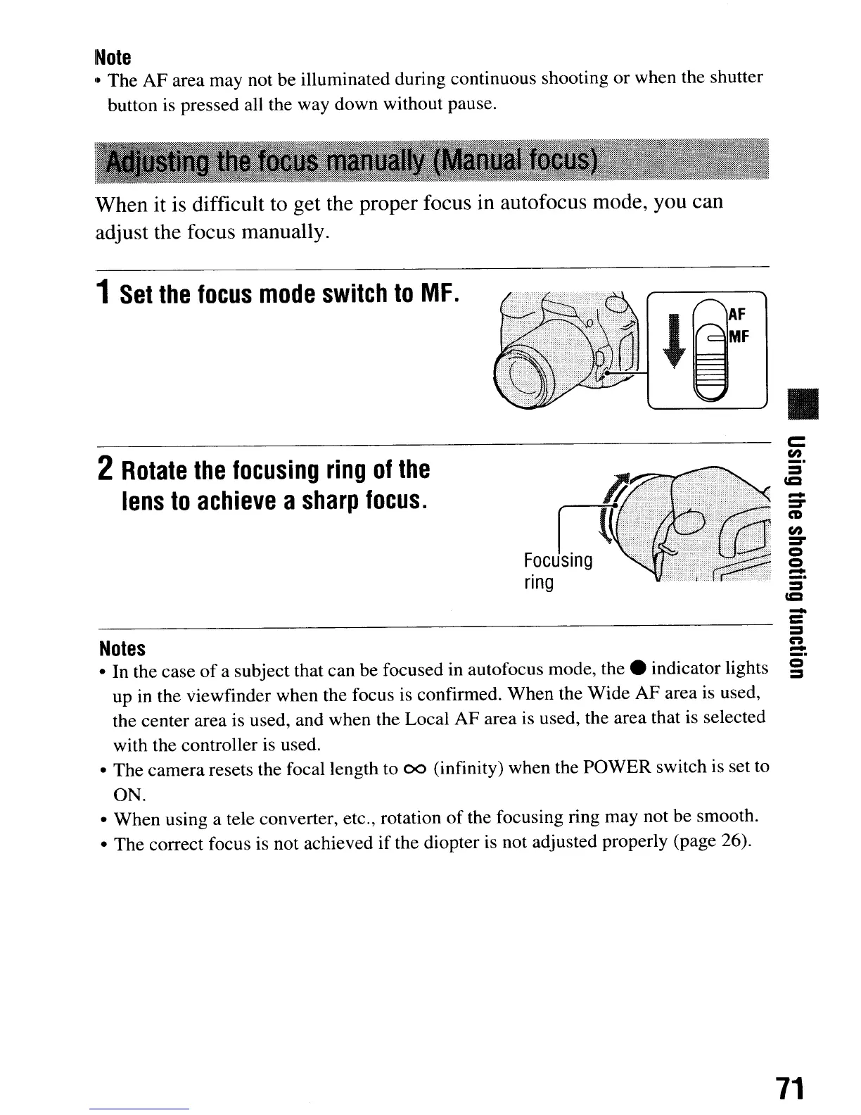 up in the viewfinder when the focus is confirmed. When the Wide AF area is used,