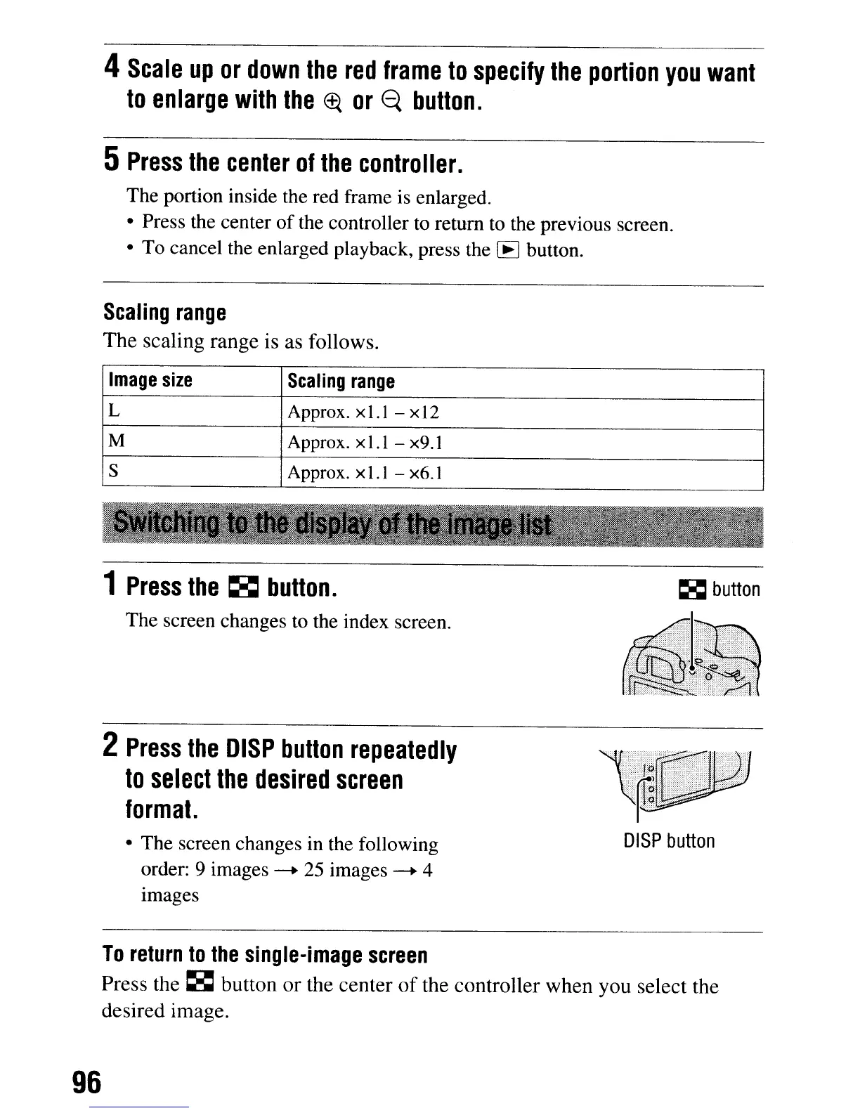 • To cancel the enlarged playback, press the