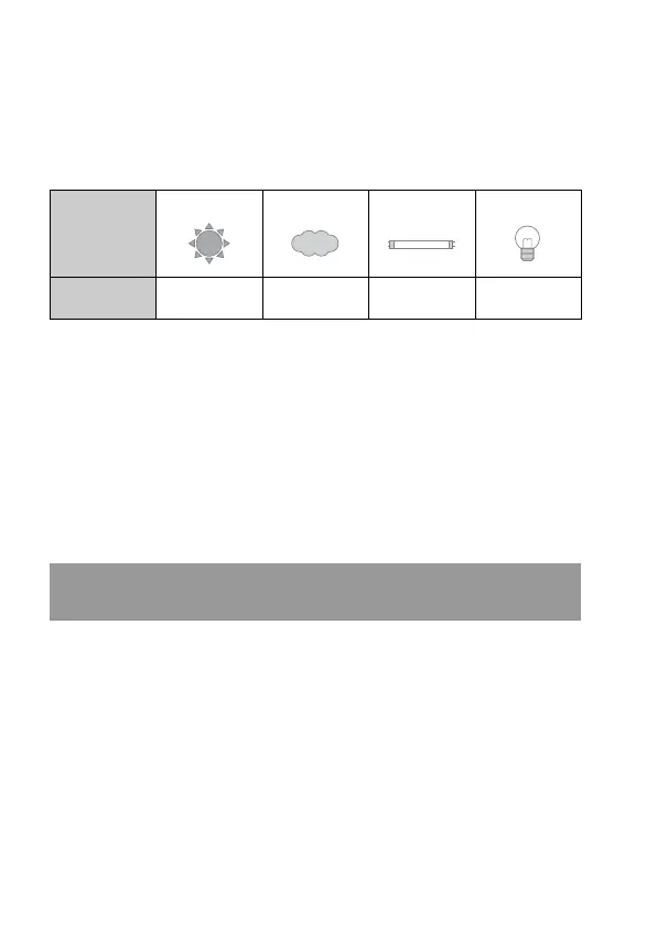 the light source. The table below shows how the color tone changes based
