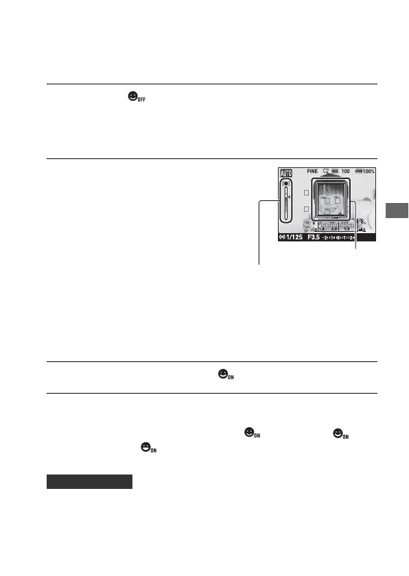 1 Fn button t (Smile Shutter) t [On] t Select the