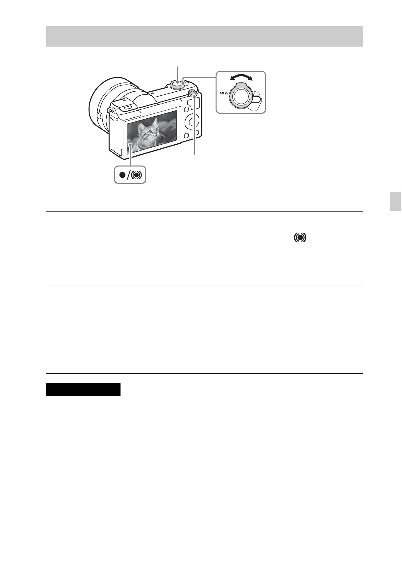 • When using the zoom function while shooting a movie, the sound of the camera