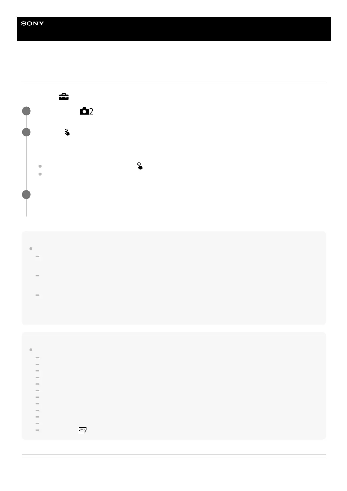 [Drive Mode] is set to [Cont. Bracket], keep touching the monitor until the shooting ends. After the recording you can select the