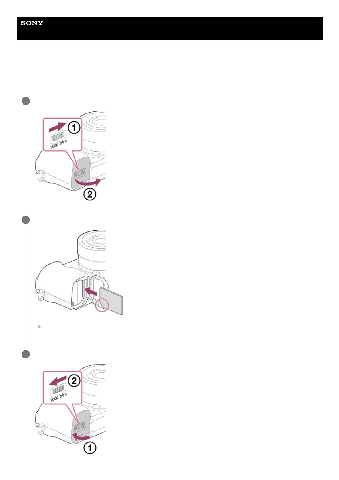 With the notched corner facing in the direction illustrated, insert the memory card until it clicks into place. Insert