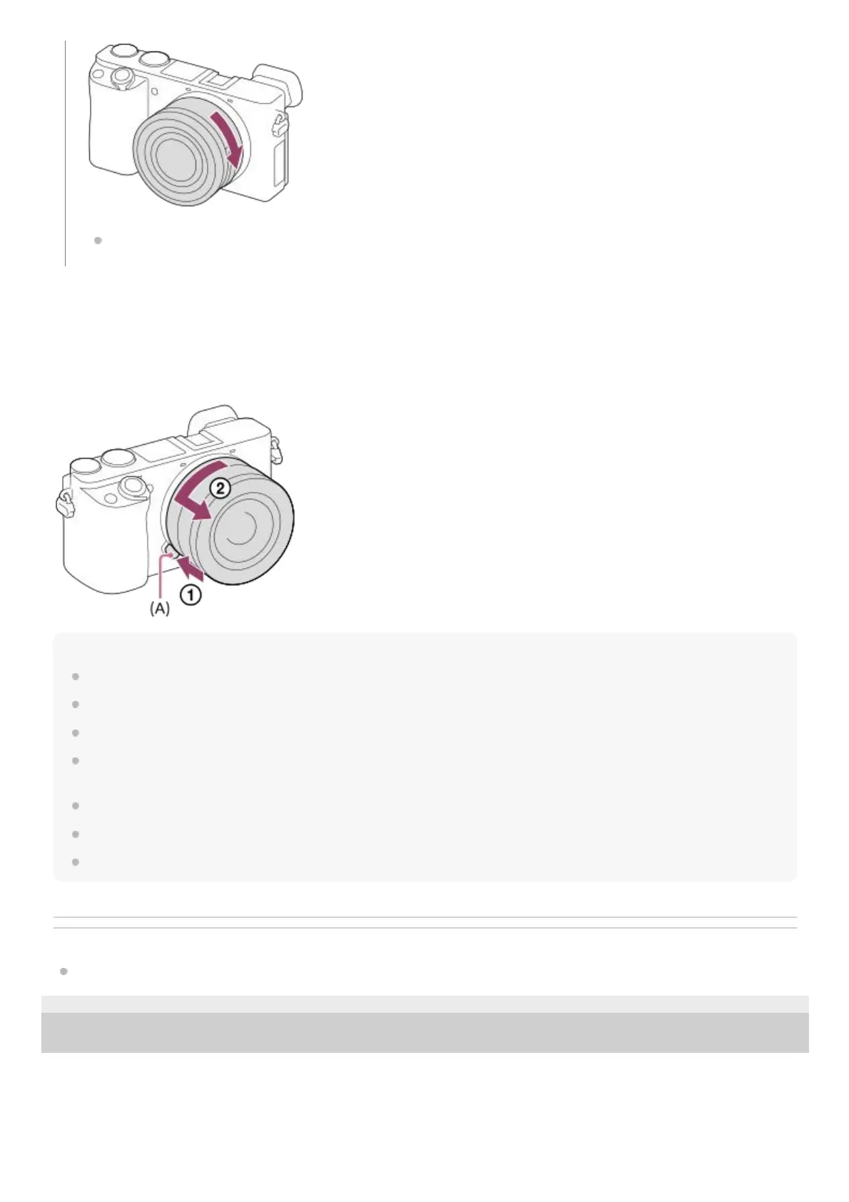 A Mount Adaptor (sold separately) is required to use an A-mount lens (sold separately). When using the Mount Adaptor, refer to