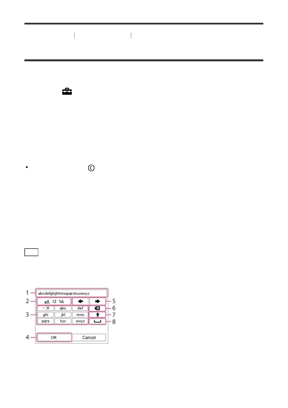 2. When you select [Set Photographer] or [Set Copyright], a keyboard appears on the