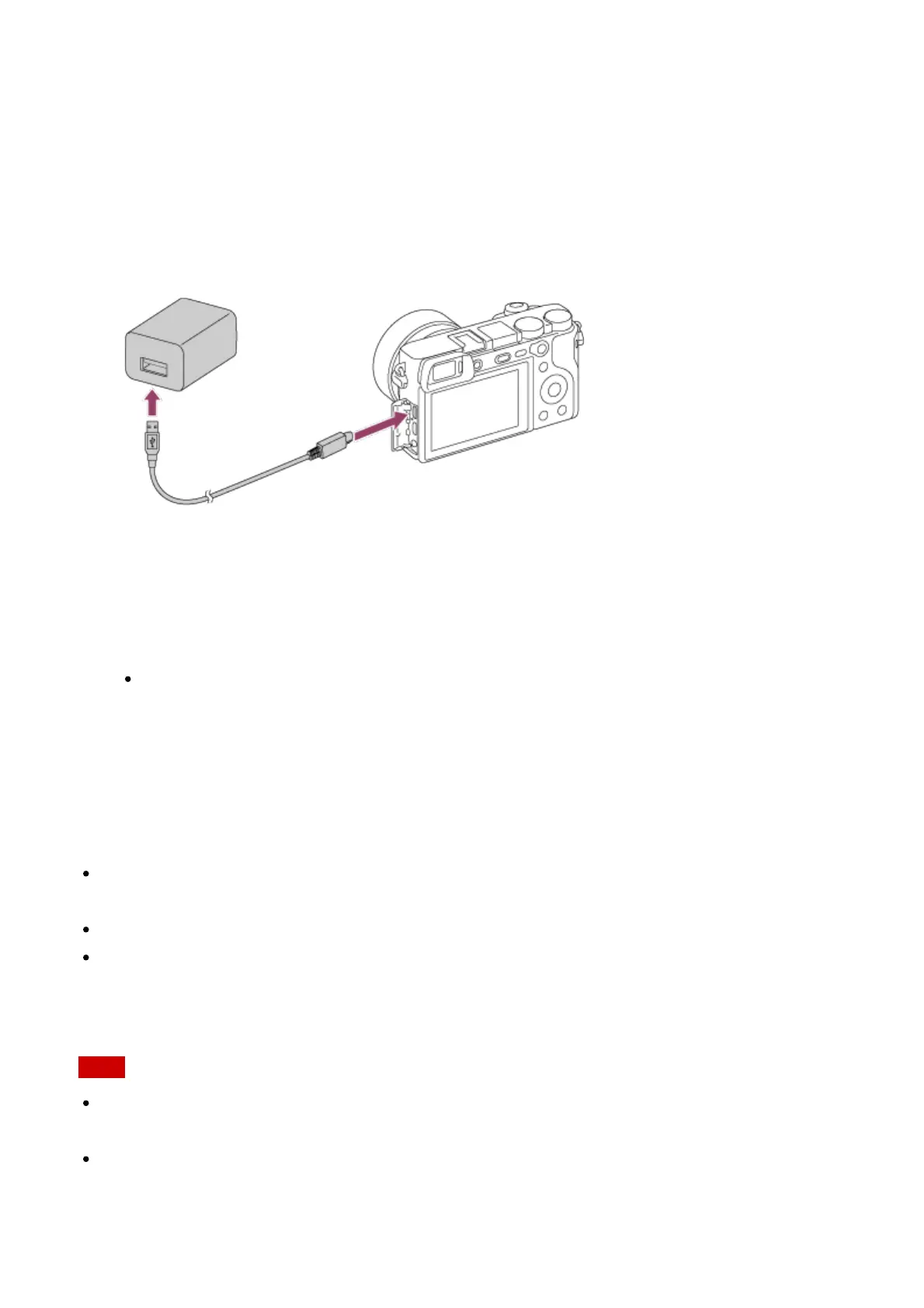 Flashing: Charging error or charging paused temporarily because the camera is not