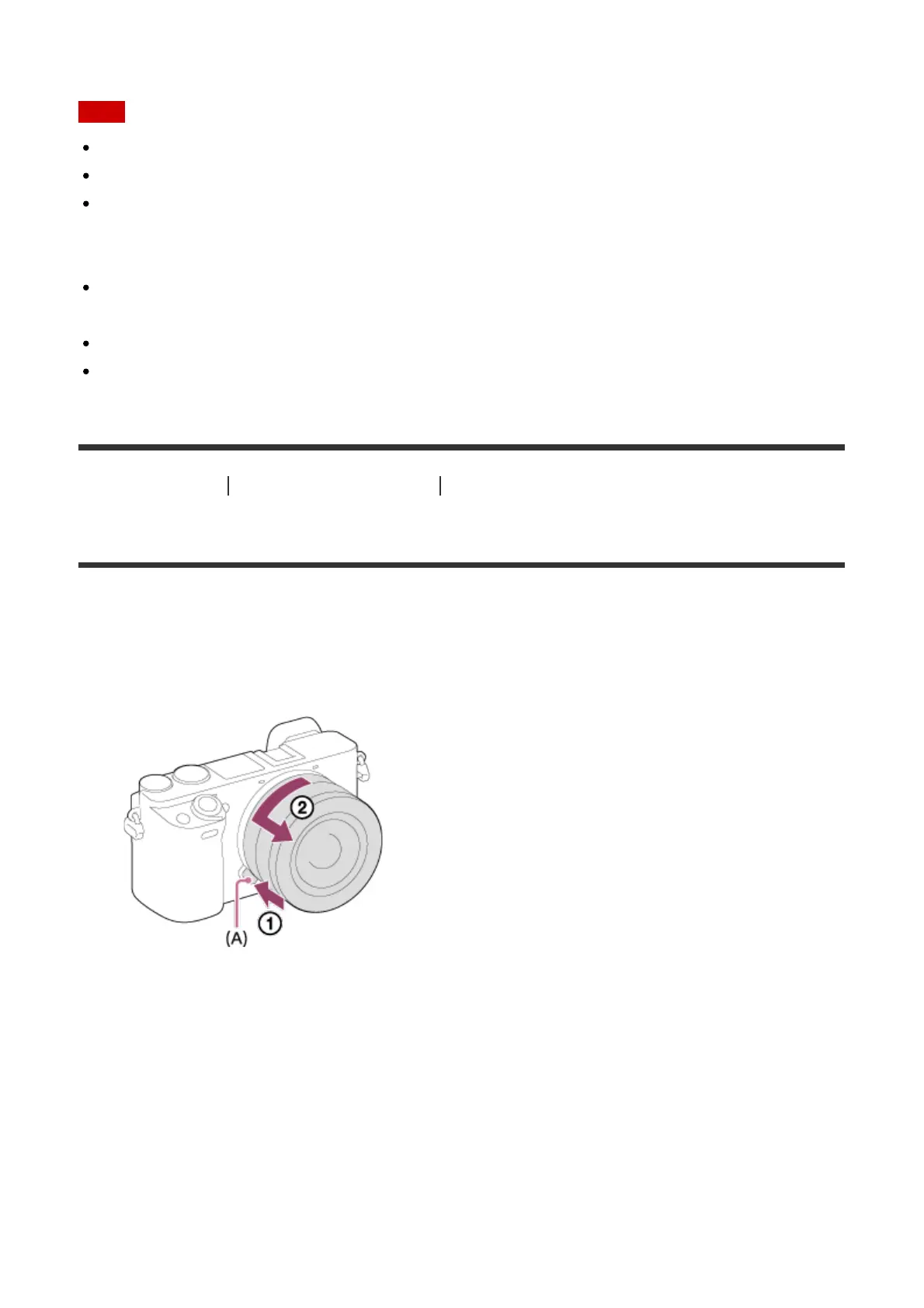 1. Keep pressing the lens release button (A) and turn the lens in the direction of the arrow