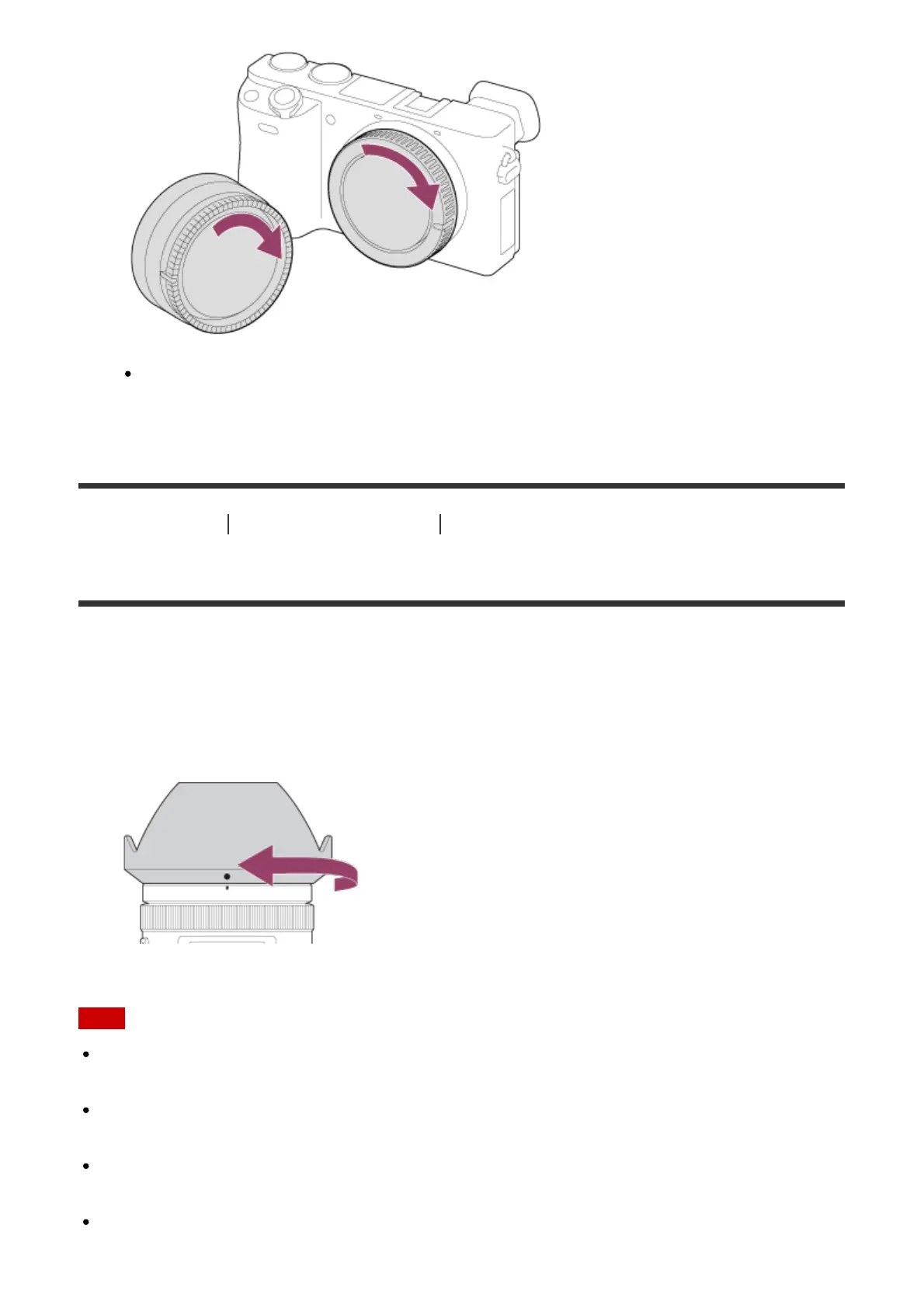 When the lens hood is attached properly, the lens hood index (red line) matches the red