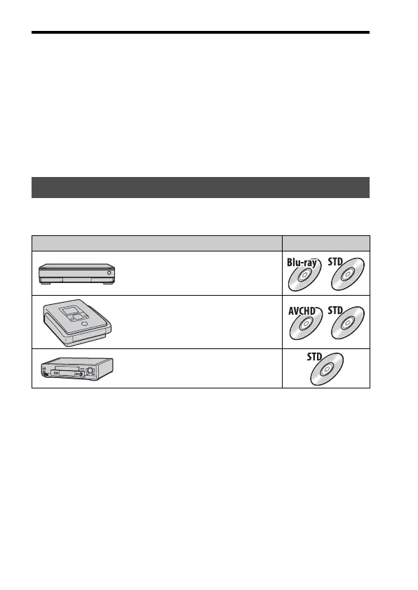 • For details on how to create a disc, refer to the operating instructions of the device