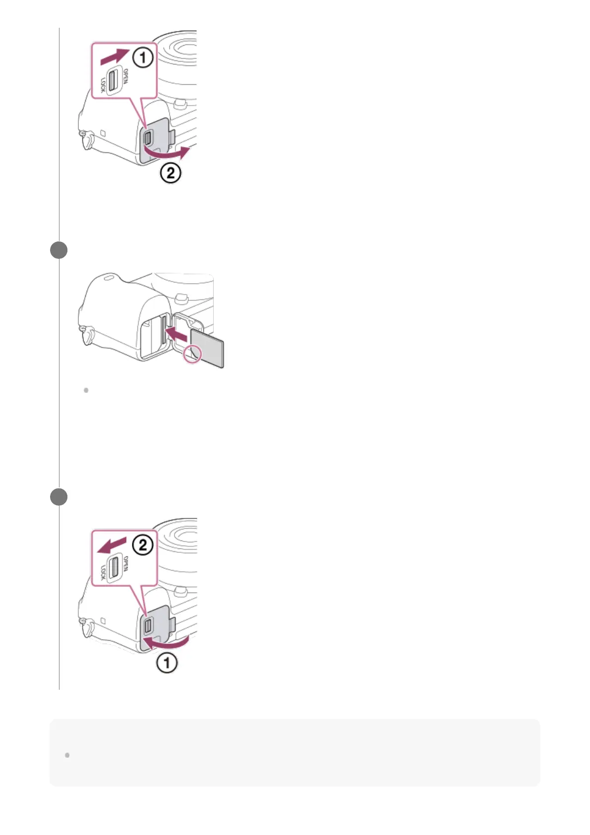 it clicks into place. Insert the memory card correctly. Not doing so may cause a