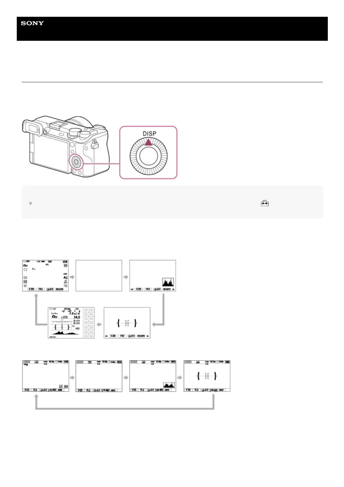 By pressing the DISP (Display Setting) button, you can change the content displayed on the screen during shooting and