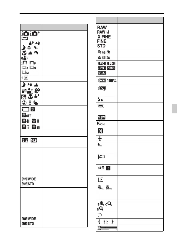 Auflistung der Symbole auf dem Bildschirm