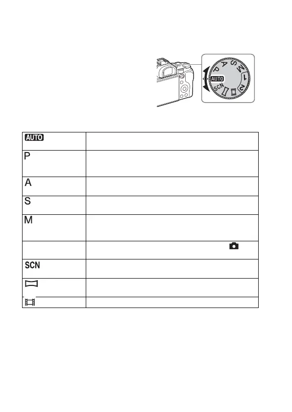 (Auto Mode) Allows you to shoot still images with the settings adjusted