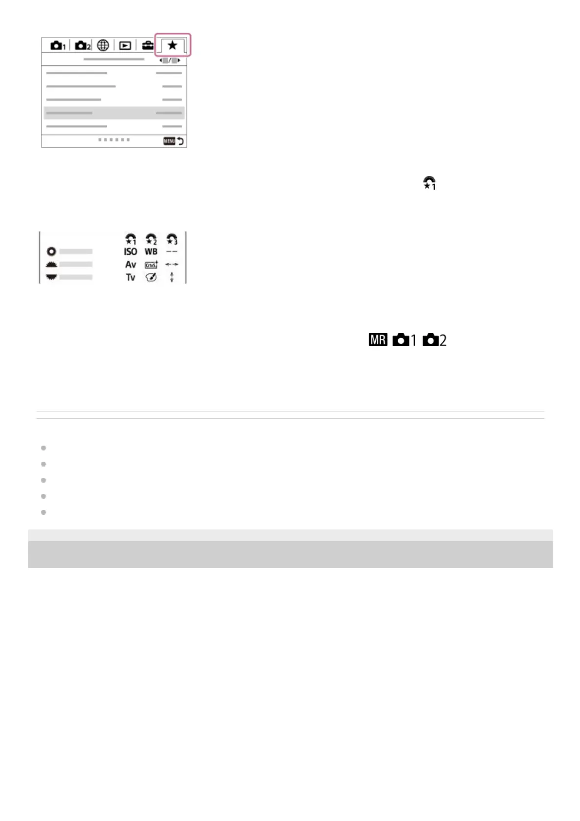 You can register the appropriate shooting settings* for scene to the camera or a memory card, and call up the settings