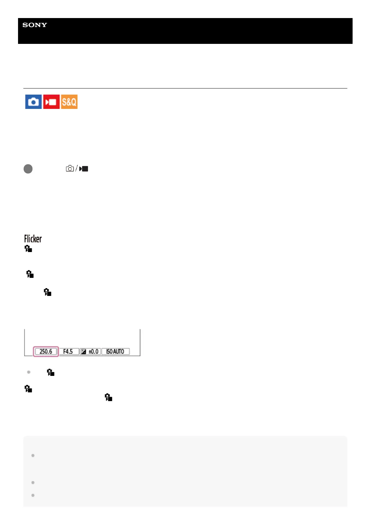 Detects flickering and reduces its impact when the frequency of the light source is 100 Hz or 120 Hz while shooting still