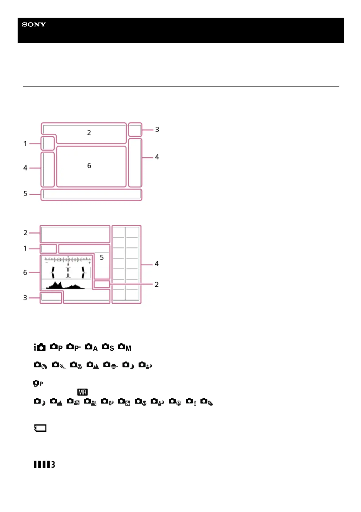 List of icons on the screen for shooting still images