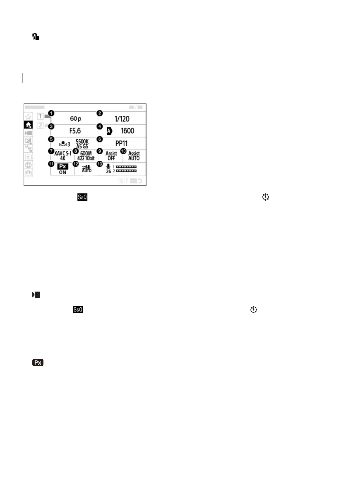 S&Q Settings (when shooting slow-motion/quick-motion movies)/ Record Setting (when
